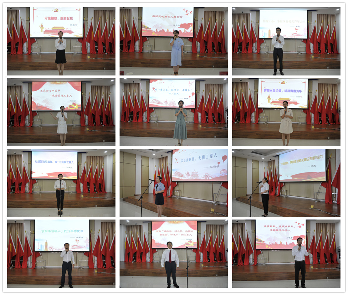 主题演讲比赛自6月下旬开始组织筹备,经推荐和初选,共12名35岁以下选手参加了演讲比赛。12名参赛选手按比赛前抽取的编号顺序依次登台,以争做“讲政治、顾大局、善团结、抓落实、作表率的工委人”为主题,声情并茂,用真挚的情感、优美的语言和铮铮誓言,讲述了一个个动人的工委人故事。工委党校曹雷,讲述了作为新时代的工委人,尤其是工委的青年人,要在温热良心中坚守初心使命,争做区直机关青年的政治表率;在常学常新中提升理论修养,争做区直机关青年的学习表率;在严于律己中锻造过硬作风,争做区直机关青年的作风表率。党建督查指导部任翀,讲述了通过在工委工作的经历明白了共产党是一支使命光荣,凝心聚力,守望相助的队伍,表达了自己加入共产党的决心和以后的工作方向。纪检监察工委李耀清,讲述了他在读研期间从其所代理的民事案后找到了自己作为法律人的法治初心,在随后的公安工作中默默地守护着这颗初心。两年后,他带着这颗法治初心开启了要坚定地成为一名新时代工委人的新征程。工会工委刘晓芳,讲述了入职两个月以来,在工委感受到更多的是温暖,是激励,是希望和美好。作为新时代的工委人,愿坚守岗位,奉献青春,当好工委机关的螺丝钉。……精彩的演讲引起了在场观众的强烈共鸣,博得了现场观众阵阵掌声。