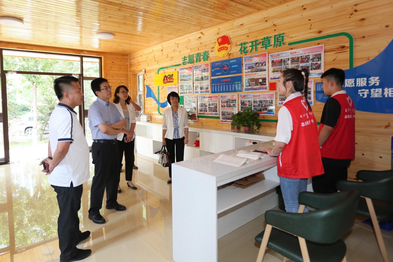 调研组一行在365beat版app_365bet官网娱_下载bst365团委副书记、党组成员匡晓蕾的陪同下,实地观摩了青春微笑服务厅、志愿者服务指挥中心、全区新媒体矩阵等“党建融合+”阵地;深入部分党支部查看了会议记录、主题党日档案等资料,详细了解推进“五化协同”和创建“最强党支部”工作开展情况。