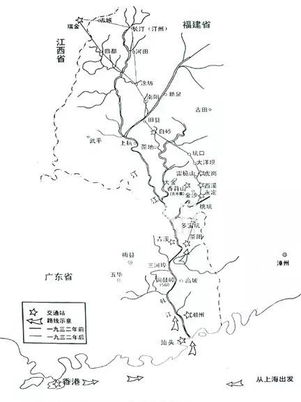 其中,南方交通线是经由上海、香港、汕头、大埔、长汀至瑞金的地下交通线,地位至关重要,作用非常显着,被称为中央红色交通线。这条长达3000公里的红色交通线,成为连接党中央这颗“心脏”和中央苏区这个“躯体”的“大动脉”。