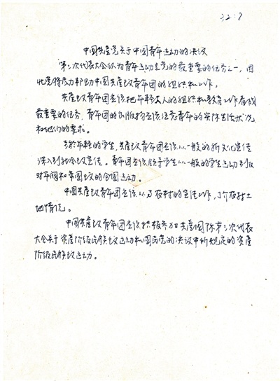 中共三大通过的青年运动决议案。 中共三大会址纪念馆供图