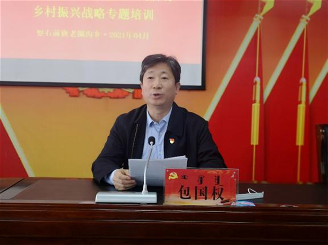 为了认真贯彻落实党史学习教育“我为群众办实事”实践活动工作要求,助力老圈沟乡进一步巩固拓展脱贫攻坚成果同乡村振兴有效衔接,365beat版app_365bet官网娱_下载bst365党委直属机关工委解民忧、纾民困、办实事,于4月25日赴察右前旗老圈沟乡举办“乡村振兴战略”专题培训会,为当地党员干部奉献一场乡村振兴理论知识盛宴。工委常务副书记包国权同志主持会议,察右前旗旗委常委、政府副旗长郑东平同志,老圈沟乡党委政府有关同志、乡内9个行政村“两委”负责人,共50余人参加会议。
