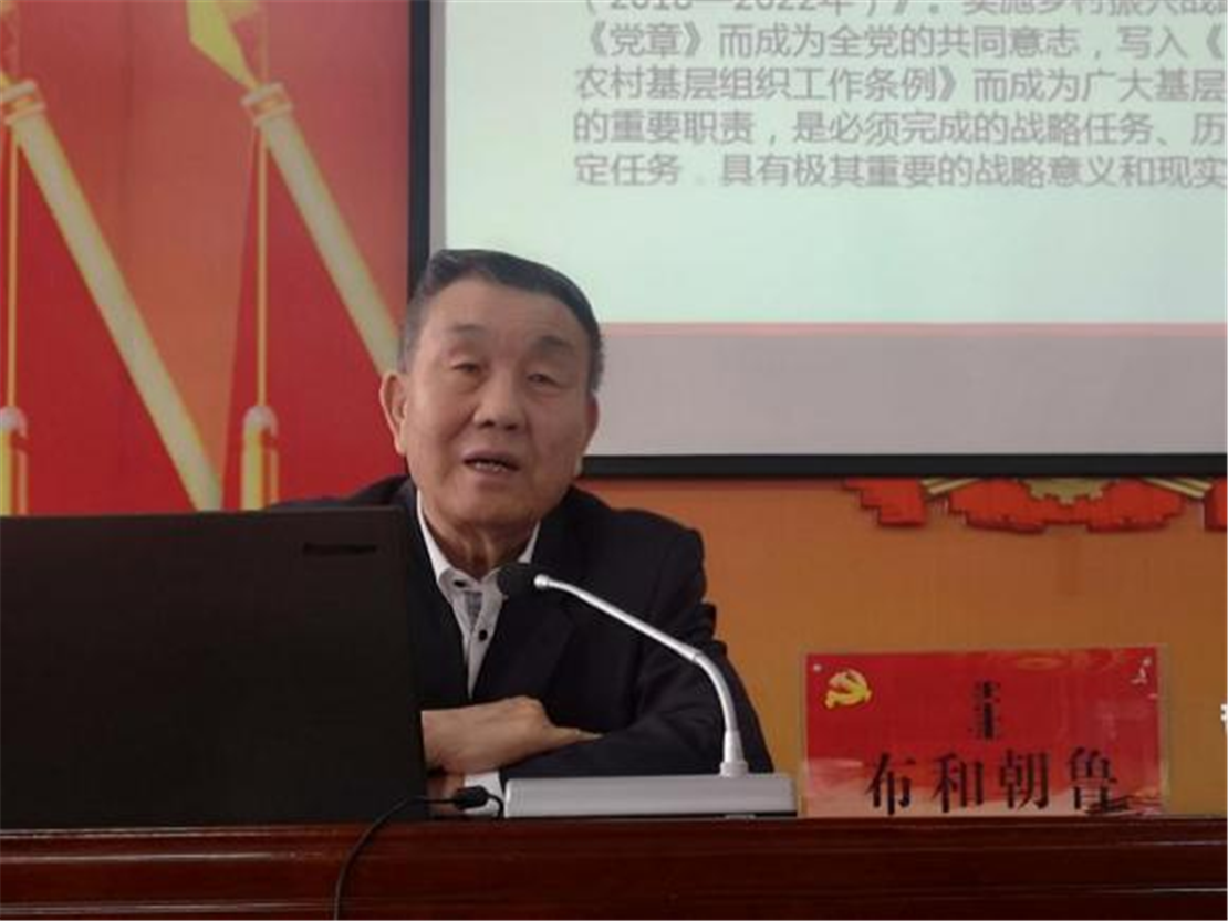 会议邀请了内蒙古牧区资源合作商会乡村振兴战略研究中心顾问、巴彦淖尔市乌拉特中旗政府顾问布和朝鲁同志作《谈实施乡村振兴战略》专题辅导讲座。布和朝鲁同志授课内容详实、知识脉络清晰、理论剖析深刻、紧密联系实际,先后从“充分认识重大意义”、“全面落实总的要求”、“乡村振兴规划先行”三个方面,深刻阐述了新时代背景下如何认识好、规划好、实施好乡村振兴战略。并就老圈沟乡的经济发展现状、产业结构特点、生产生活中面临的主要问题等与参会人员进行了深入的座谈研讨。大家互动踊跃、反响热烈。