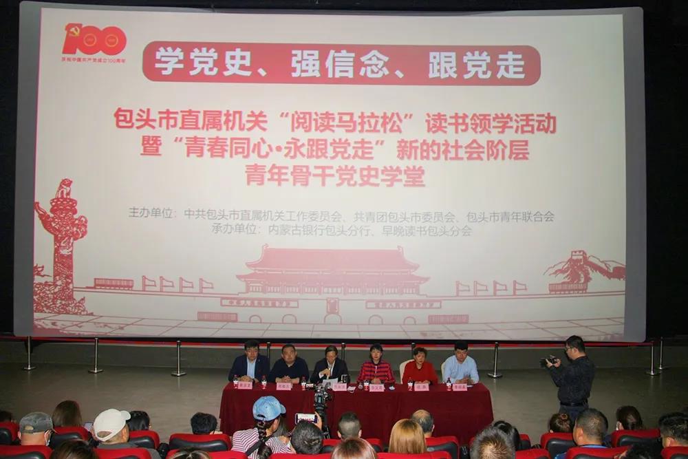 今年是中国共产党成立100周年,党中央在全党组织开展了党史学习教育,为深化“包头市直属机关青年党员理论学习提升工程”,推动机关党史学习教育走深走实,今年在机关青年党员干部中开展“阅读马拉松”读书领学活动,为青年党员干部搭建学习交流的平台,选树学习典型,启动仪式上,由中共包头市委党校基本理论与市情教研室副主任王素英同志领学《论中国共产党历史》,领学活动结束后观看了影片《建党伟业》。