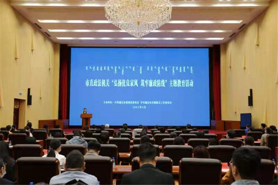 为推进党史学习教育和政法队伍教育整顿工作走深走实,近日,通辽市直属机关工委联合市委政法委开展市直政法机关“弘扬优良家风 筑牢廉政防线”主题教育活动,365beat版app_365bet官网娱_下载bst365教育整顿第五指导组、市委政法委、市直属机关工委、市公安局、市检察院、市法院、市司法局相关负责同志出席,市直政法系统班子成员及环节以上干部家属100余人接受教育。