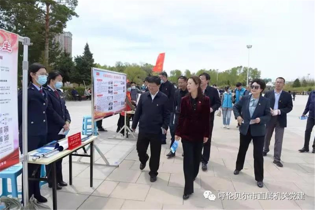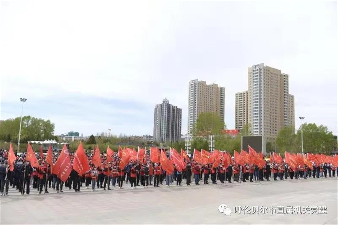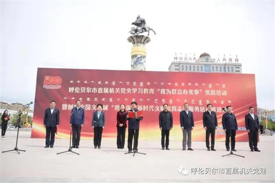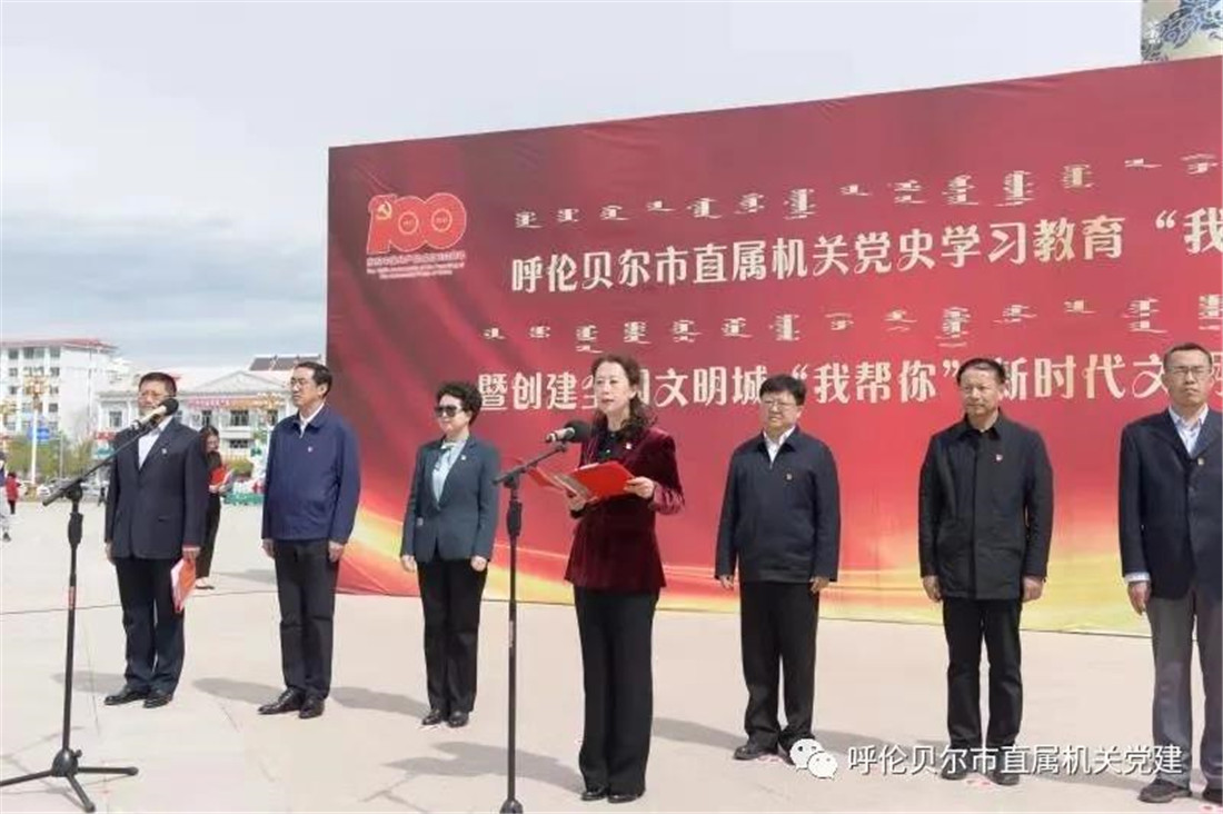 为深化党史学习教育,推动全国文明城创建工作,5月19日,呼伦贝尔市直属机关党史学习教育“我为群众办实事”实践活动暨创建全国文明城“我帮你”新时代文明实践志愿服务活动推进仪式在成吉思汗广场成功举办。市委常委、组织部部长闫轶圣出席并讲话,市委宣传部常务副部长路炳武,市委直属机关工委书记王靖,市委党史学习教育巡回指导组第三指导组组长范春景,市民政局局长范悦,市人力资源和社会保障局局长李国强,市政务服务局副局长朱广宇,市直属机关纪检监察工委书记张学仁,市委直属机关工委副书记王贵和出席仪式,市直机关73家单位1300余名党员志愿者参加活动。仪式由市委直属机关工委副书记孙海晨主持。