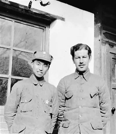 1938年,英国记者贝特兰与八路军120师副师长萧克合影
