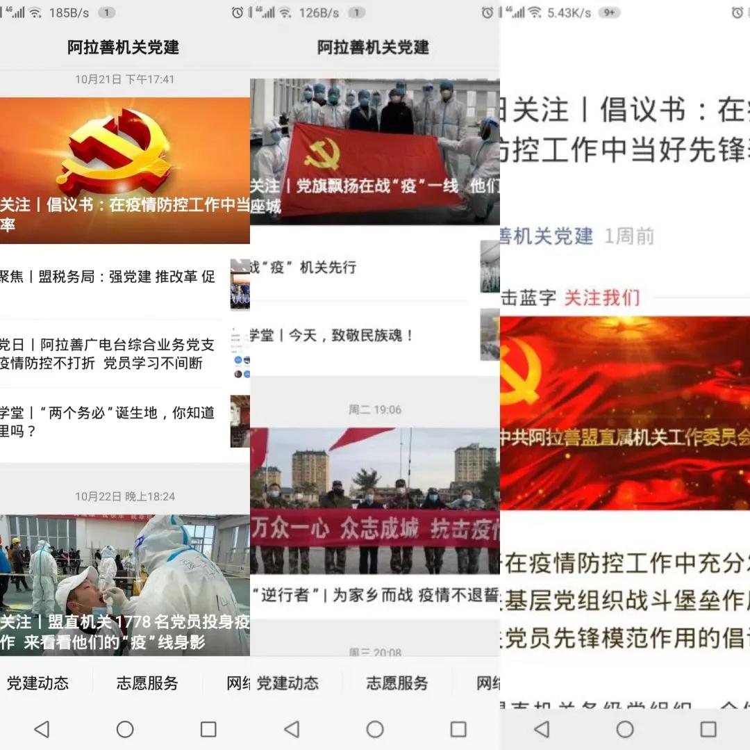 盟直机关工委通过“阿拉善机关党建微信公众号”广泛宣传中央、365beat版app_365bet官网娱_下载bst365、盟委疫情防控工作指示精神和工作要求,积极宣传盟直机关基层党组织和党员干部在疫情防控中的先进典型和感人事迹,发布《致驰援额济纳旗疫情防控一线党员干部的一封信》,引领广大党员以实际行动汇聚抗击疫情的强大合力,致敬学习“最美逆行者”,切实为疫情防控工作营造良好舆论氛围。