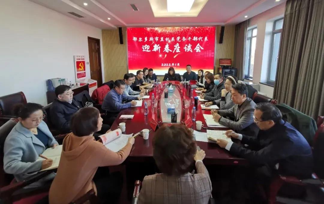 鄂尔多斯市直机关党工委召开市直机关党务干部代表迎新春座谈会。会议由市直机关党工委副书记朱永霞主持,市直机关党工委书记伏兰芳、市直机关党工委三级调研员李波和部分市直机关专职党务干部代表参加座谈会。