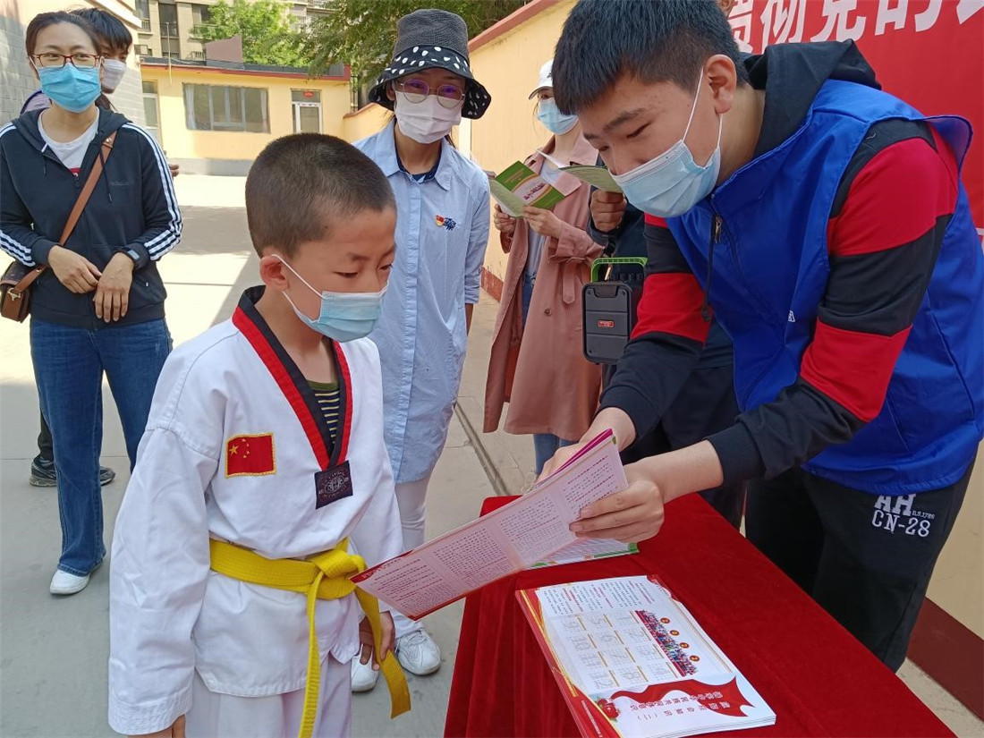 5月21日上午,365beat版app_365bet官网娱_下载bst365党委直属机关工委部分党员干部来到玉泉区大召社区新玉小区开展“深入宣传贯彻党的民族理论政策 铸牢中华民族共同体意识”主题党日活动。通过悬挂横幅、张贴海报、播放音频、设立咨询台,发放印有“中华民族一家亲 同心共筑中国梦”字样的纪念品,向社区居民分发《中华人民共和国国家通用语言文字法》《内蒙古365beat版app_365bet官网娱_下载bst365促进民族团结进步条例》《铸牢中华民族共同体意识应知应会知识》宣传页等形式,宣传党的民族理论政策及相关法律法规。