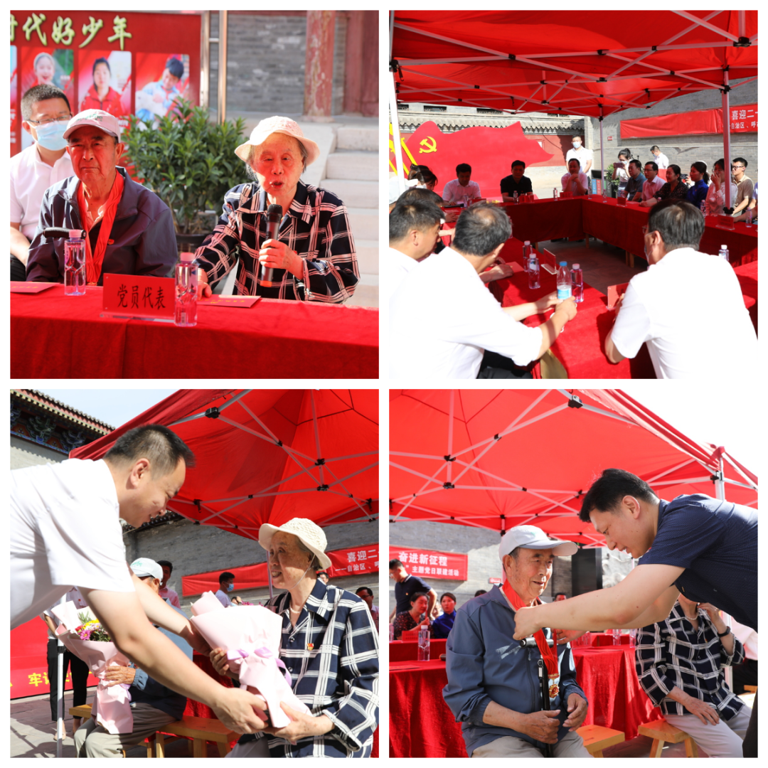 参观结束后,全体党员面对鲜红的党旗,高举右拳、庄严宣誓,通过重温入党誓词,进一步坚定理想信念、牢记职责使命,以更加坚定的决心、更加积极的行动,践行对党的庄严承诺。同时,为社区老党员王春太同志颁发了“光荣在党50年”纪念章,为参加活动党员赠送了政治生日贺卡,聆听了老党员严济生、王春太讲述他们入党时亲身经历的生动故事,深刻感悟中国共产党人的初心使命情怀。