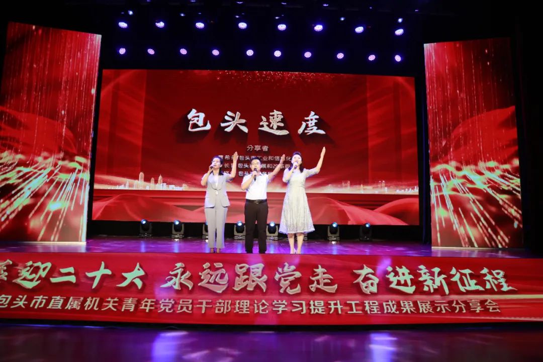 为庆祝中国共产党成立101周年,迎接党的二十大胜利召开,中共包头市直属机关工委于7月1日,在包头大剧院举办“喜迎二十大 永远跟党走 奋进新征程”——包头市直属机关青年党员干部理论学习提升工程成果展示分享交流会。