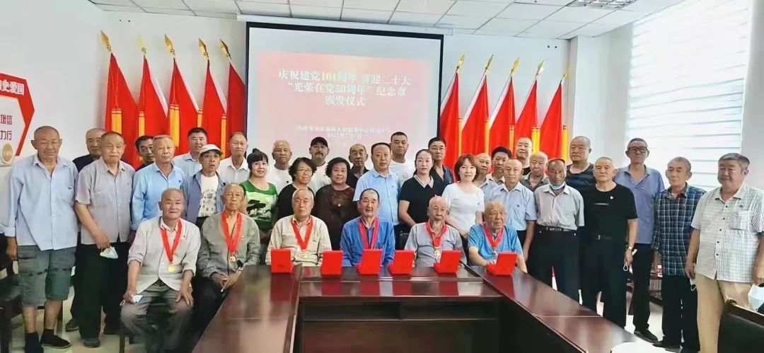 在庆祝中国共产党成立101周年之际,为了继承和发扬党的优良传统,鼓励广大老党员继续保持经久不变的共产党人本色,增强党性,树立正气,在充分表达对老党员的尊重和肯定的同时,激励年轻一代积极响应时代号召,永远跟着党走,乌海市直机关各基层党组织共为74名老党员颁发“光荣在党50年”纪念章。