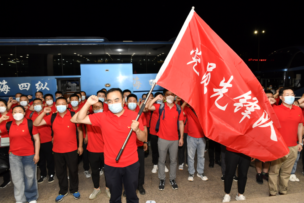 7月8日晚,巴彦淖尔市首批85人“党员抗疫先锋队”星夜驰援乌拉特中旗甘其毛都镇抗疫一线。巴彦淖尔市委常委、组织部部长王亚忠为“党员抗疫先锋队”送行。