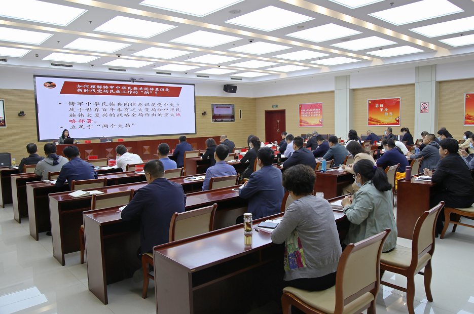 培训邀请内蒙古党校教授萨仁“以铸牢中华民族共同体意识为主线 推动新时代党的民族工作高质量发展”为题,从铸牢中华民族共同体意识的时代价值和以铸牢中华民族共同体意识为主线推动新时代党的民族工作高质量发展两个方面,围绕以历史为鉴,把握铸牢中华民族共同体的历史传统;以制度引领,坚持和完善民族区域自治制度;以文化浸润,推进中华民族共有精神家园建设;以团结为纽带,促进各民族交往交流交融等四个层面诠释了铸牢中华民族共同体意识的时代价值。讲座运用深入浅出的语言和鲜活详实的事例数据,对民族理论和民族政策进行了深入阐释。讲座既有政治高度又有理论深度,内涵丰富、重点突出,使广大党员干部深受启发、倍受鼓舞。