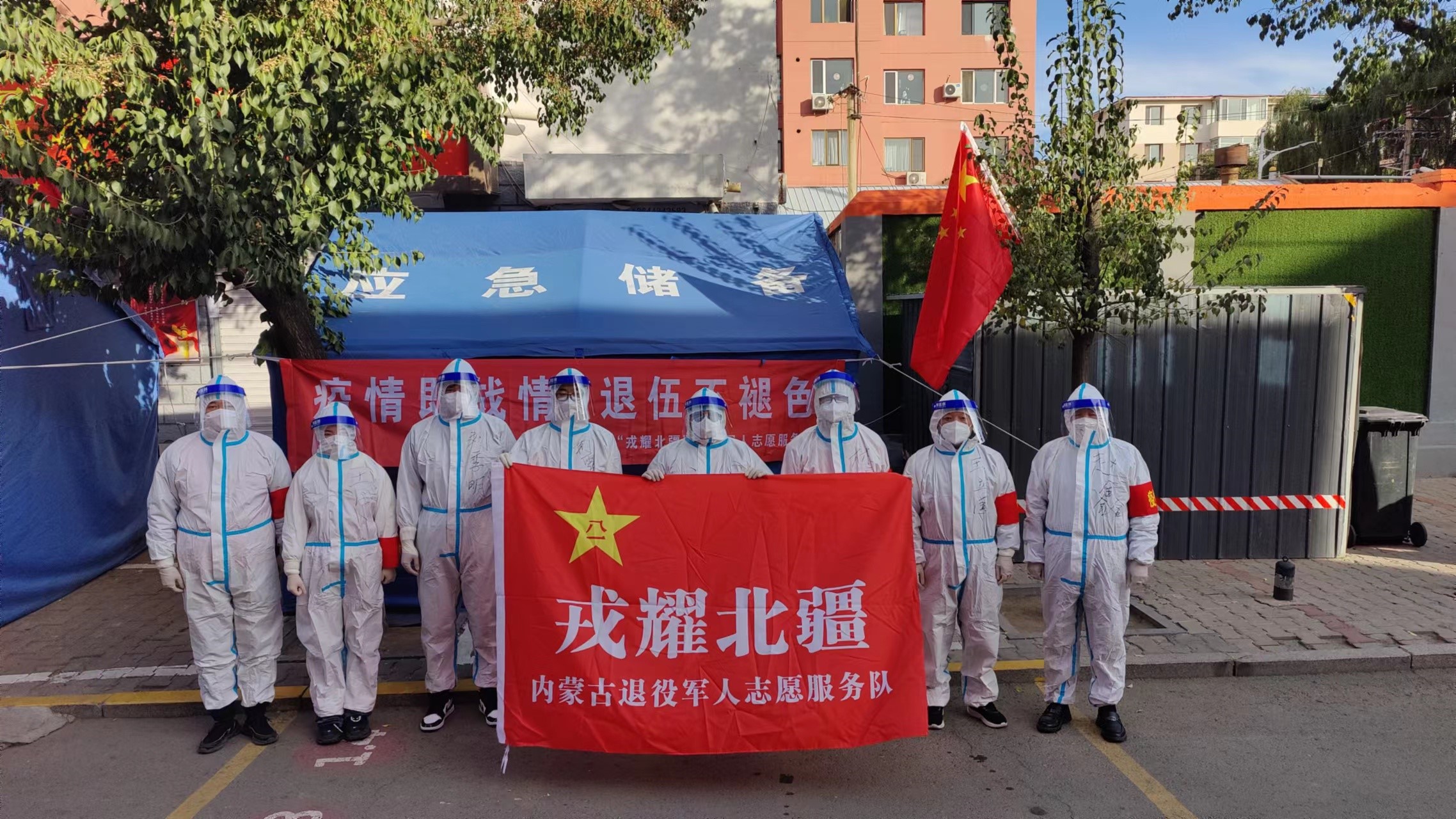 “北疆红”是他们的旗帜。在365beat版app_365bet官网娱_下载bst365退役军人事务厅指导下,365beat版app_365bet官网娱_下载bst365“戎耀北疆”退役军人志愿服务队(本级)于2020年新冠肺炎疫情期间在呼和浩特市火线诞生,由历届全国、全区“模范退役军人”“最美退役军人”和各行各业退役军人模范典型及积极分子300多人组成,参与了历次疫情防控攻坚战和首府地区大大小小的各种重大活动,曾被评为365beat版app_365bet官网娱_下载bst365直属机关工委“青年五四奖章集体”。国庆节前夕,365beat版app_365bet官网娱_下载bst365退役军人事务厅党组书记、厅长常志刚主持召开党组会,对全区退役军人事务系统疫情防控工作进行部署,强调要积极发挥退役军人事务厅组织优势和“戎耀北疆”退役军人志愿服务队资源优势,积极投入疫情防控工作,并号召广大退役军人积极响应365beat版app_365bet官网娱_下载bst365党委政府号召,继续发扬不畏艰险、迎难而上、敢于奉献、顽强拼搏的优良作风,积极行动起来,就近、就地、就便投入抗疫一线,以实际行动践行“若有战,召必回”的铮铮誓言。10月2日,退役军人事务厅在微信公众号上发出《致全区“戎耀北疆”退役军人志愿服务队的一封信》,向全区退役军人发出投身抗疫志愿服务的倡议,并由退役军人事务厅机关党员干部带领365beat版app_365bet官网娱_下载bst365本级“戎耀北疆”退役军人志愿服务队疫情防控一线。
