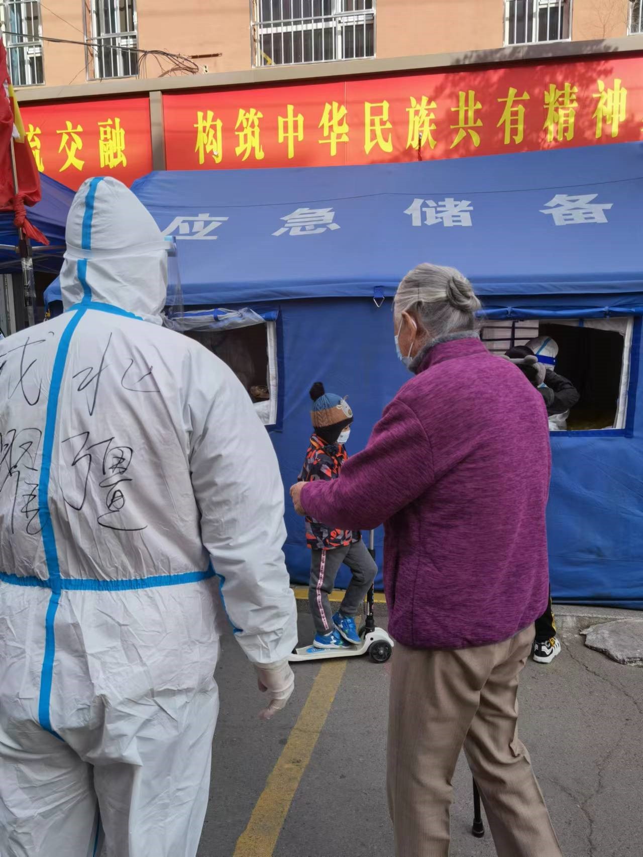 “到疫情防控形势最严峻,人民群众最需要的地方去!”这是他们的宣言,也是他们的行动!西落凤社区和小召前街街道办位于呼和浩特市相对繁华地带,面积较大、人员密集、四通八达,防控压力非常大。队员们不仅负责维持现场秩序,发放核酸贴纸,帮助搬物资、送材料、做消杀,而且还耐心地做着部分群众的思想解释工作,帮助老弱病残顺利优先做核酸,赢得了群众的一致好评。此次行动中,“戎耀北疆”志愿者还用“摩托车”“无人机”等工具参与抗疫行动,取得了良好效果。