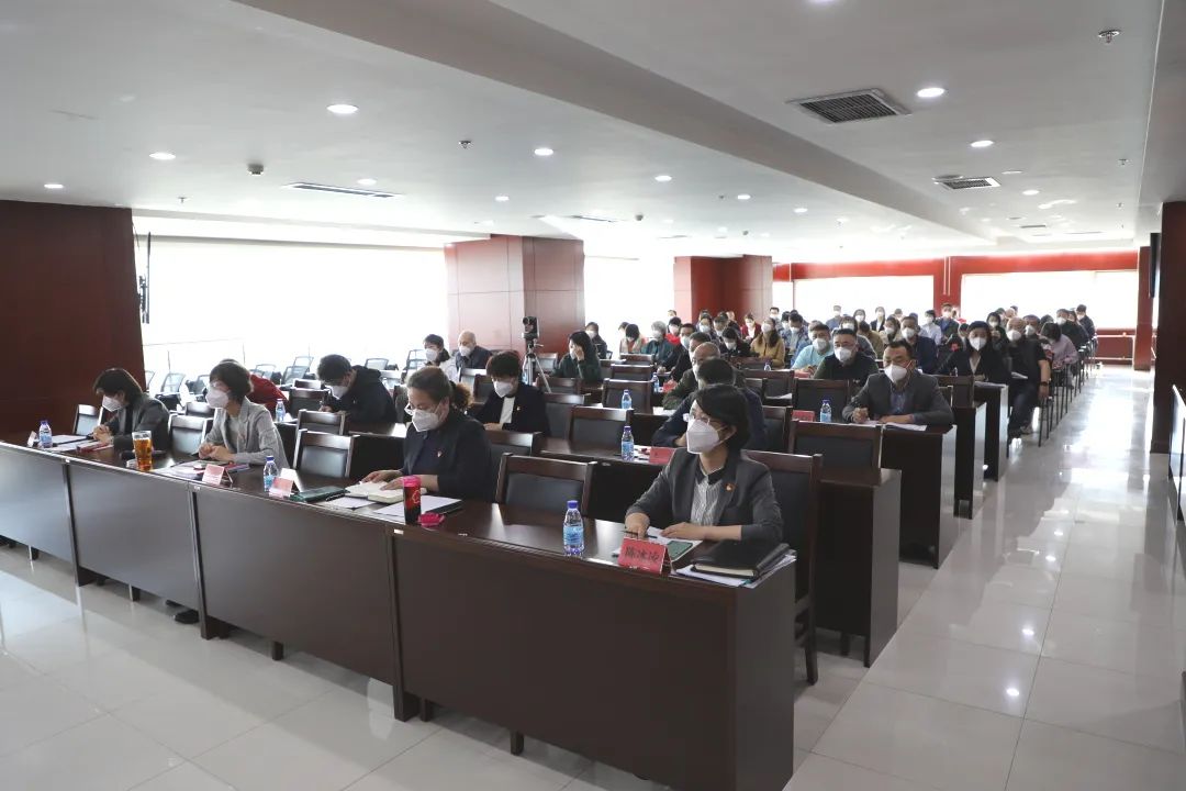 台党组成员杜中、布和布音、李志、高雪芹、贾杰,以及各部室、中心班子成员和科组级干部共300余人参加视频会议。按照疫情防控要求,台内闭环管理人员线下参加会议;居家办工的科组级以上干部通过视频连线线上参加会议。