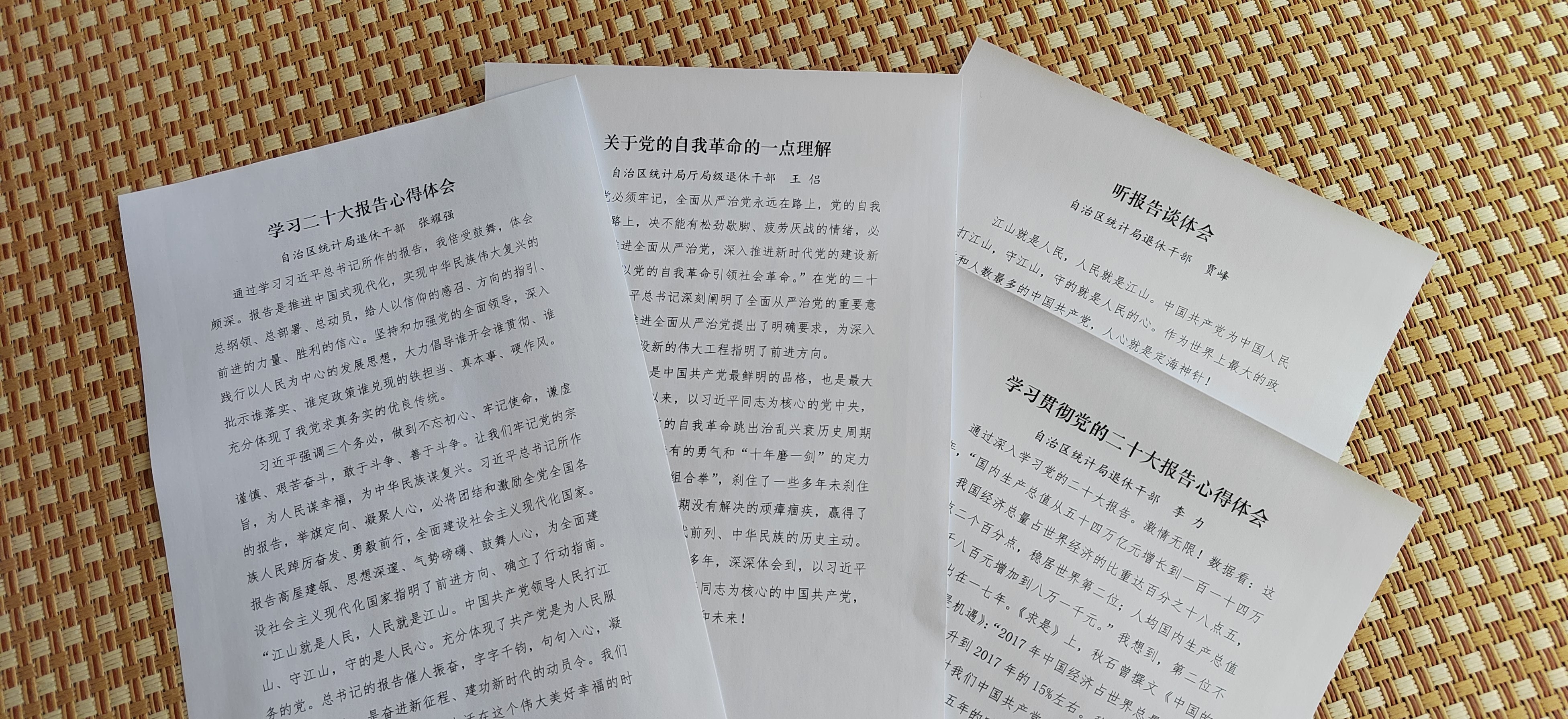 你一言我一语,不知不觉两个小时过去了,大家一致表示在今后的大家日子里要继续学习宣传贯彻落实党的二十大精神,为我区统计事业发展献计献策。
