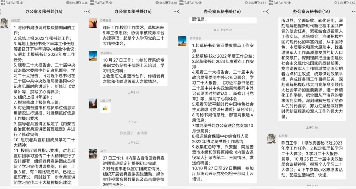 党的二十大胜利召开后,365beat版app_365bet官网娱_下载bst365退役军人事务厅秘书处、办公室党支部充分发挥“最强党支部”示范引领作用,科学制定学习计划,积极把党的二十大精神作为“三会一课”、主题党日的重要内容,不断推进学习贯彻走深走实;积极探索适应疫情防控条件的学习方式方法,创新建立了网上“日学习交流机制”,组织所属人员反复研学党的二十大报告和党的二十大形成的三个决议原文,并在认真学习的基础上,每天利用微信工作群,讨论交流个人学习体会,同时结合业务讲工作谈思路,形成了良好的学习互动氛围,做到了疫情防控和学习工作的两不误、两促进,切实在学习贯彻党的二十大精神上走前列、做表率;新修订的《中国共产党章程》颁布后,适时开展“学党章尊党章践党章”主题党日活动,进一步强化了党章意识。