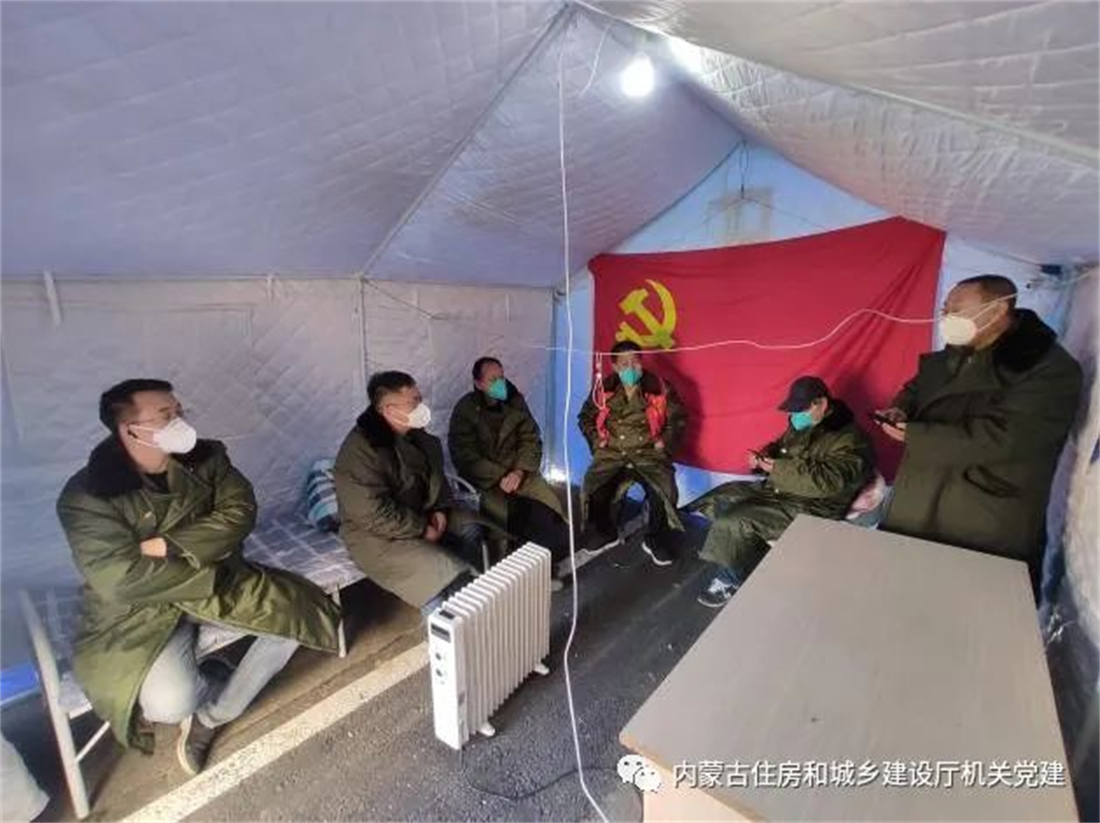 中国广电内蒙古网络有限公司下沉干部李全和、王强两位同志进驻包联吉泰北小区后,马上就与社区干部、网格员、点位长对接,全面了解掌握小区疫情防控情况,同时加入小区居民微信群,亮明自己下沉干部身份、公布手机号,向广大居民郑重承诺:“值守期间始终保持与大家沟通畅通,努力为大家做好各项工作”。同时,为了把党组织的战斗堡垒建在疫情防控最前沿,他们还组织动员居住在小区内的其他党员,成立了以李全和同志为书记、王强同志为宣传委员的“战疫”临时党支部,切实做到组织有号召、党员见行动,让鲜红的党旗在防疫一线高高飘扬。