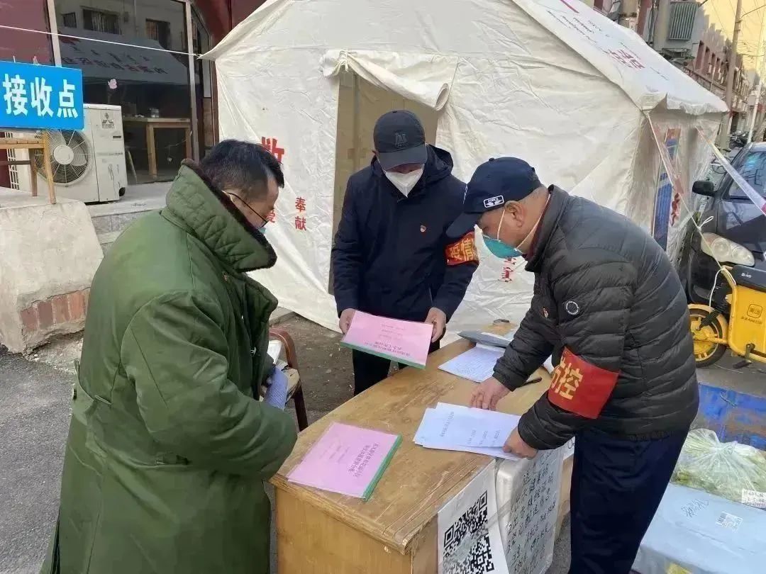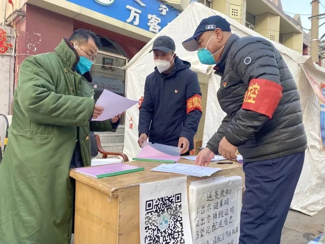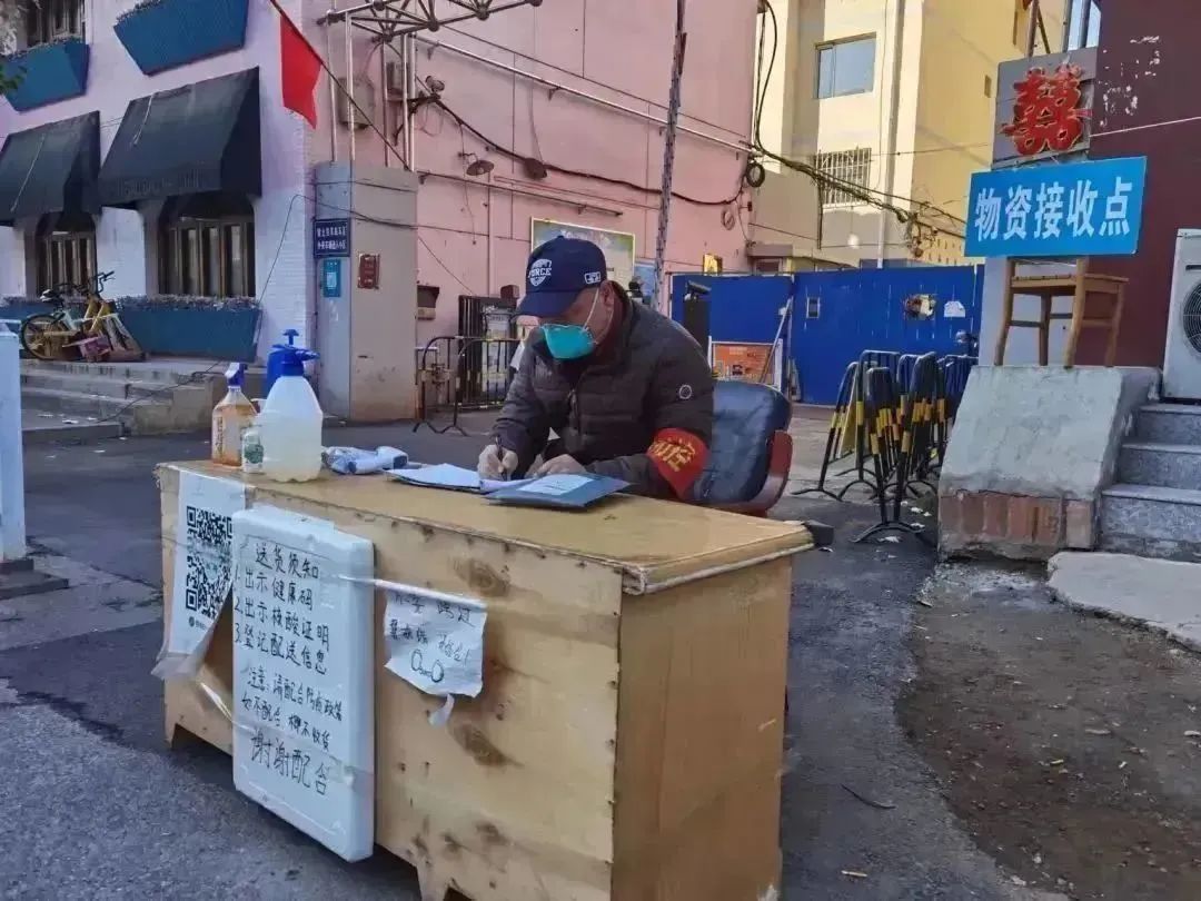 王轶军在小区门口卡点值守,对进出小区人员进行登记