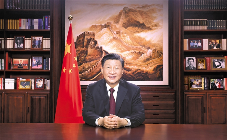 新年前夕,国家主席习近平通过中央广播电视总台和互联网,发表二○二三年新年贺词。 新华社记者 鞠鹏 摄