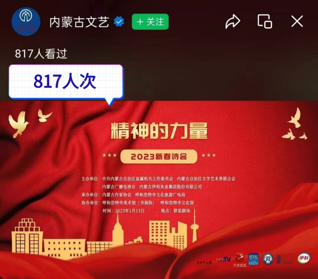 作为内蒙古文联主办的迎新春系列文艺活动,本次诗会既是一场诗意之旅,也是一次精神洗礼 ,诗会紧紧聚焦学习宣传贯彻党的二十大精神,以诗之名,感悟精神的力量,提振信心,共赴梦想的远航,为奋进新征程、礼赞新时代贡献了文艺的力量。