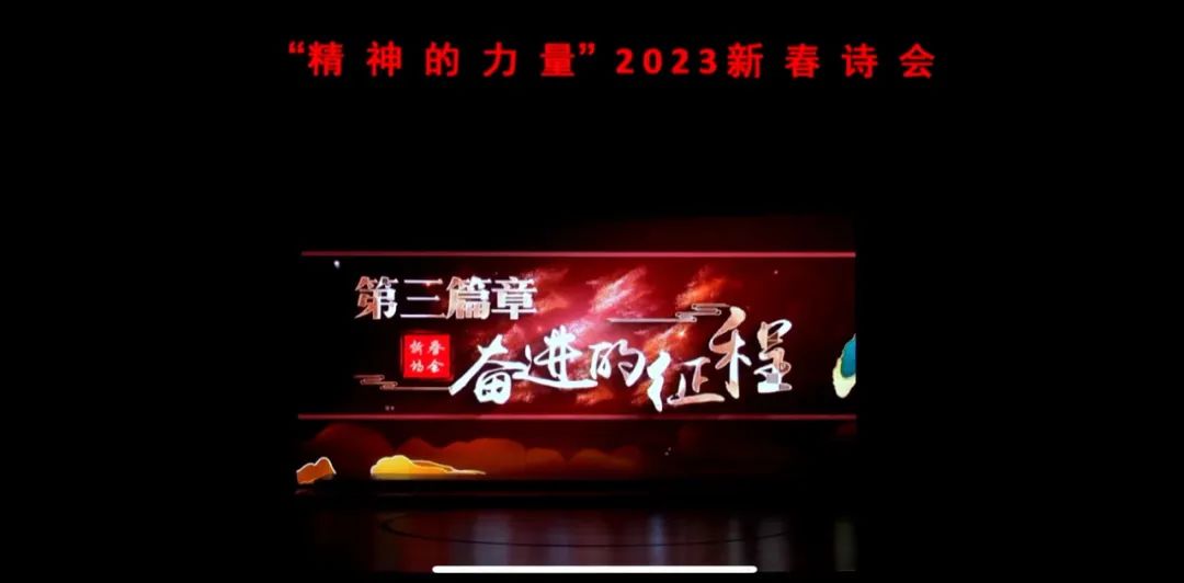 “精神的力量”2023新春诗会在《我是祖国的孩子》这首诗中拉开了序幕。本台晚会共四个篇章。本篇章由《金桂,绽放》、《不断被锻造的铁》、《以二十条河流、二十座山峰的名义,致敬》、《时间的入口》组成,表达了对祖国强大、繁荣昌盛的祝福之情。