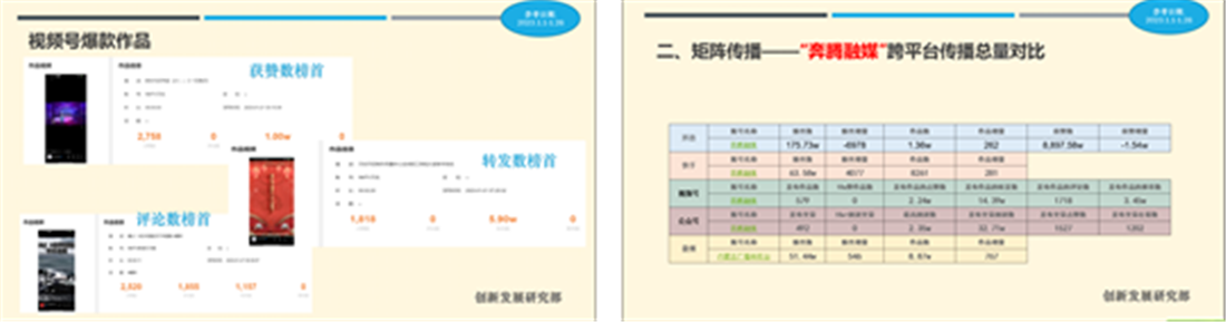 此次座谈交流筛选了内蒙古广播电视台11个相对有影响力的平台账号,分别从微信公众号、微博、抖音、快手和视频号5个平台在全网的实际传播情况进行了对比和汇总分析。