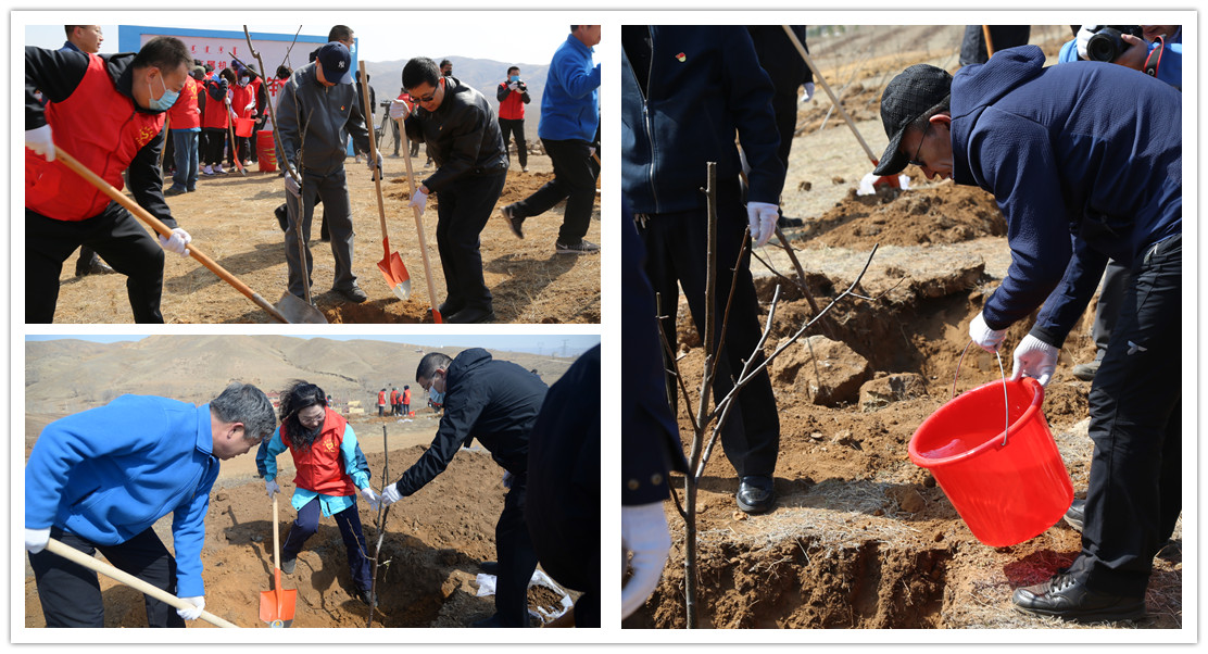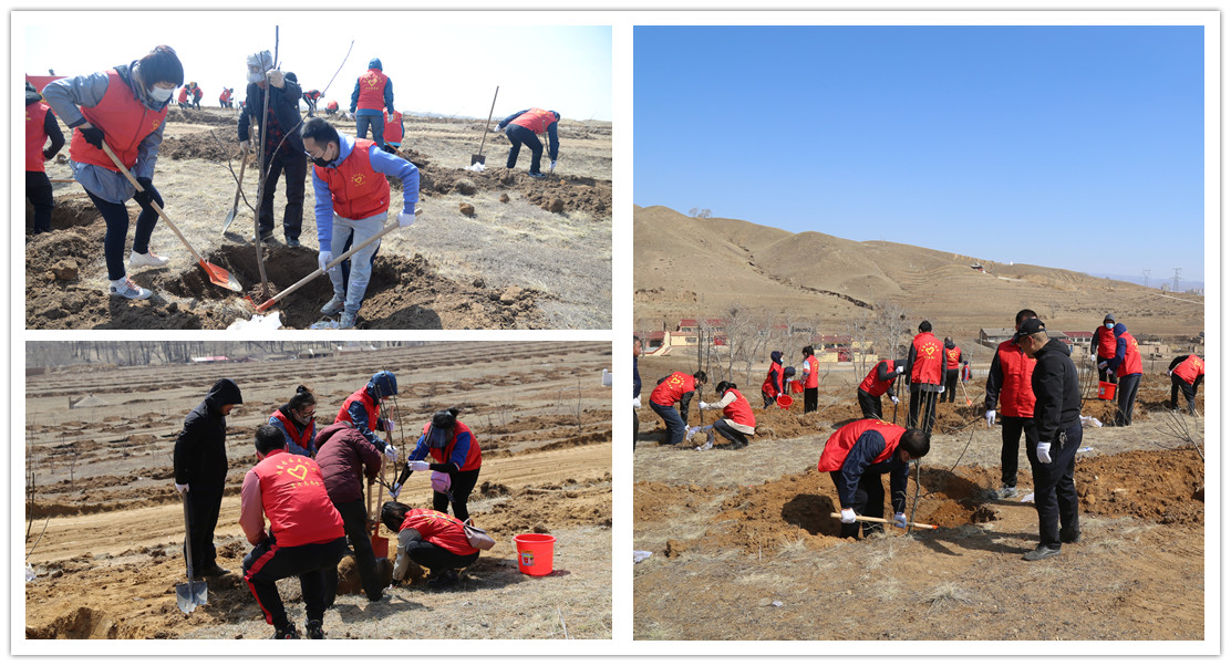 活动现场,150多名青年志愿者共种植鲜食水果果树600余株。